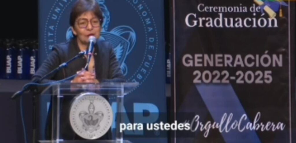 La rectora de la Benemérita Universidad Autónoma de Puebla (BUAP), Lilia Cedillo Ramírez, fue madrina de graduación de la generación 2022-2025 de los jóvenes de la preparatoria Cabrera Barroso.