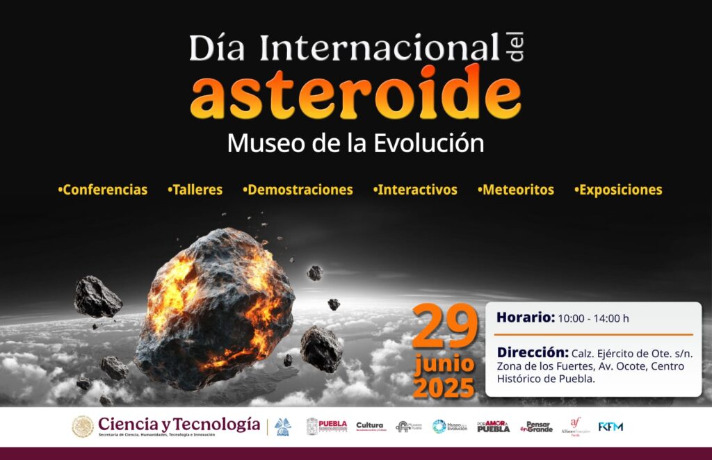 Talleres, observación del sol con telescopios con filtro, exposiciones, demostraciones e interactivos integran el programa del Día Internacional del Asteroide en el Museo de la Evolución, que se llevará a cabo este domingo 29 de junio de 10 a 14 horas en el citado recinto ubicado en la ciudad de Puebla.