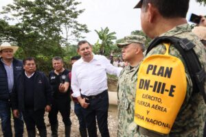 -El gobernador Alejandro Armenta realizó un recorrido por las localidades afectadas por el desbordamiento del río Pantepec.