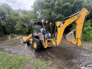 Personal de Protección Civil, Bomberos, Servicios Públicos, vecinos y personal de SOAPAMA trabajan en las zonas con daños.