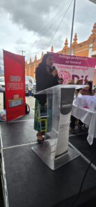 El presidente municipal de Amozoc,  Severiano de la Rosa y su esposa, Gloria Barrales, hicieron entrega de 100 sillas de ruedas, aparatos aditivos y una prótesis a personas que los necesitan.