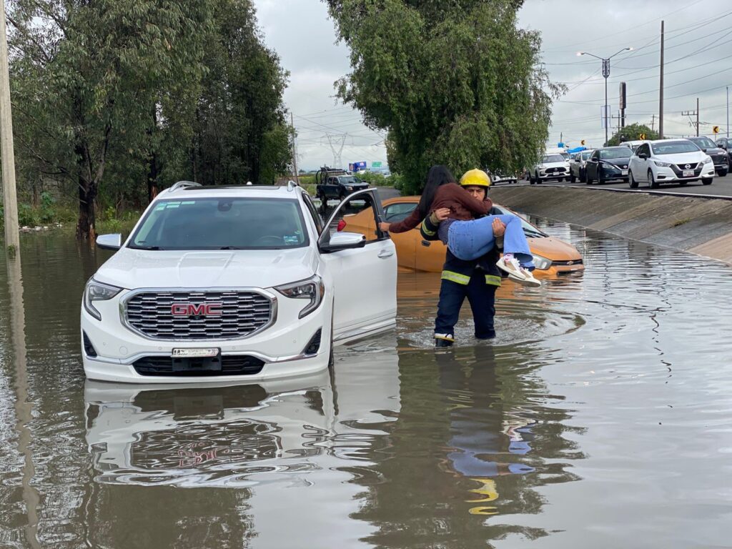 Los hechos ocurrieron en el Periférico Ecológico, a la altura de San Francisco Ocotlán, donde por las precipitaciones pluviales se estancó el agua.