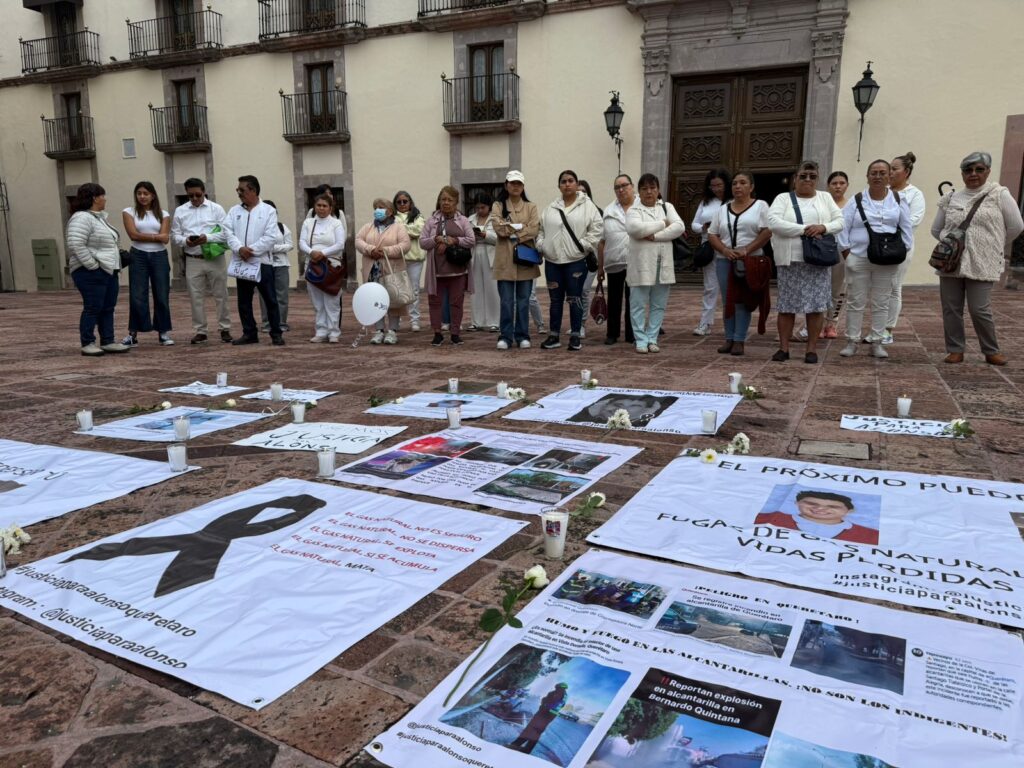 Familiares de Alonso Estrada, joven fallecido tras una explosión de gas natural, así como integrantes de la organización ciudadana #JusticiaParaAlonso, se manifestaron este miércoles frente al Palacio de Gobierno del Estado de Querétaro. La protesta busca visibilizar el creciente riesgo que representa la red subterránea de gas natural en diversas colonias de la capital, así como exigir justicia por la pérdida de vidas humanas atribuibles a presuntas omisiones y negligencias en el mantenimiento de la infraestructura por parte de la empresa de origen francés Engie.