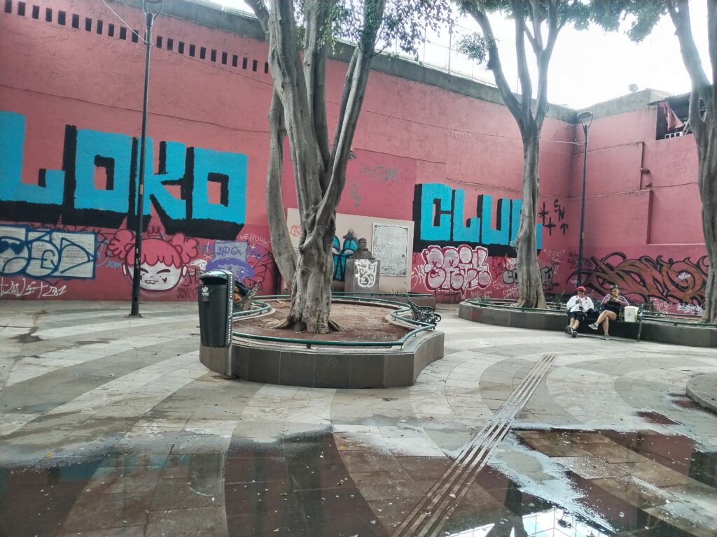Durante un recorrido, se observó que los muros están grafitados, incluso hay jóvenes consumiendo mariguana y antes del operativo para retiro de los ambulantes estaba invadido por ese sector.