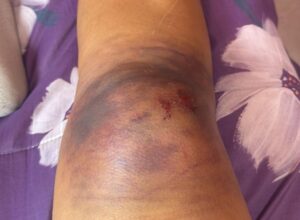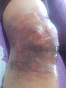 Incluso, una mujer sin poder caminar, con gastos que no estaban contemplados y que tuvo que pagar para que le atendieran la rodilla que se lastimó al caerse en la banqueta de la calle Guerrero por la irresponsabilidad de la constructora y la falta de supervisión de Protección Civil municipal, en garantizar la seguridad de los transeúntes, pese a que ocasionan accidentes sin que nadie se haga responsable:
