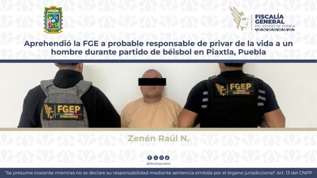 La Fiscalía General del Estado aprehendió a Zenén Raúl N., alias “El Chaparro”, de 59 años de edad, como probable responsable del delito de homicidio calificado, ocurrido en la región de Piaxtla, Puebla.