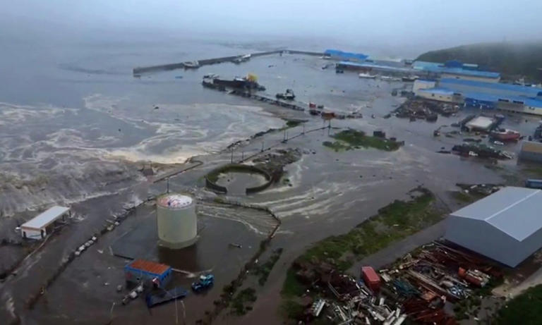 En Rusia, un tsunami inundó el puerto de Sévero-Kurilsk, en las islas Kuriles, a unos 350 kilómetros del epicentro del terremoto, dejando sumergida la planta pesquera local.