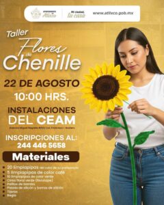 Además del taller de mecánica, durante el mes de agosto, el CEAM continuará ofreciendo otras capacitaciones, como el Taller de Flores de Chenille, que se impartirá tanto en las oficinas del CEAM, así como en las presidencias auxiliares de la Magdalena Axocopan y Metepec.