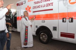 Al inicio del evento protocolario, las nuevas unidades fueron bendecidas por el Pbro. Felipe Torres García, párroco de la Parroquia de Santa María de la Asunción.