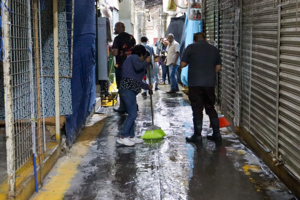Tonantzin Fernández, presidenta municipal de San Pedro Cholula, recorrió el Mercado Cosme del Razo para supervisar las labores de limpieza y seguridad, en coordinación con diversas áreas del gobierno municipal, con base en los acuerdos establecidos con las y los comerciantes del lugar.