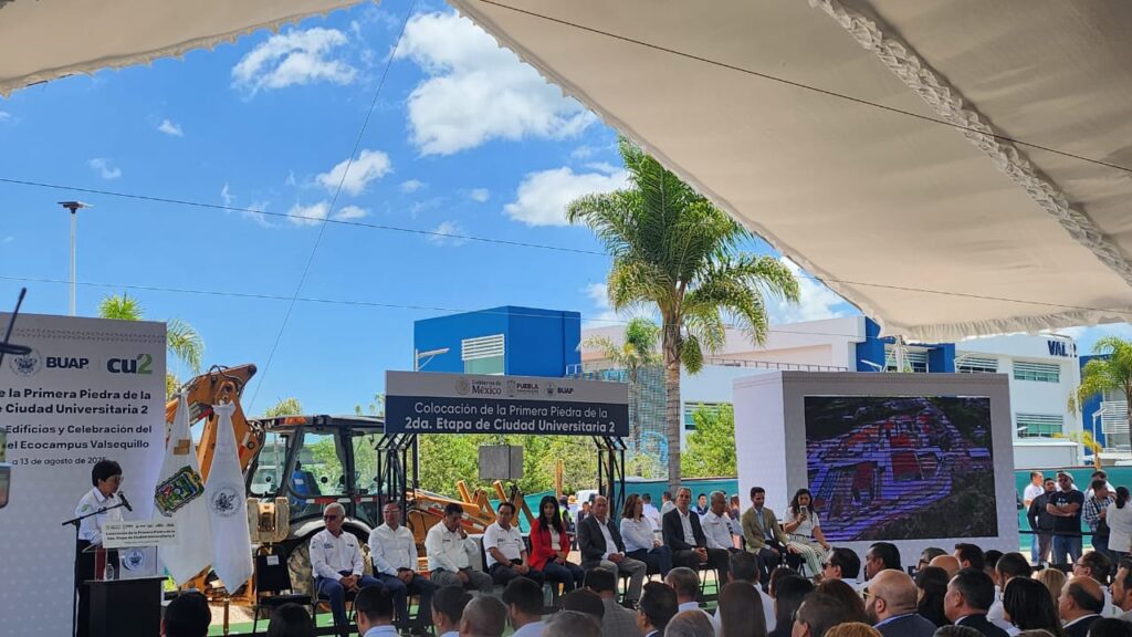 En el marco del primer aniversario de CU2, la rectora de la BUAP, Lilia Cedillo, colocó la primera piedra de la segunda etapa de esta sede universitaria, que comenzó operaciones el 14 de agosto de 2024.