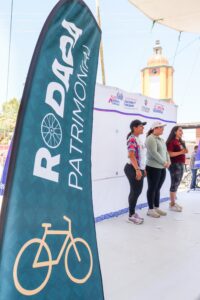 *17 de agosto, 2025. San Pedro Cholula, Pue.-* La titular de la Secretaría de Cultura estatal, Alejandra Pacheco Mex, visitó este domingo los municipios de San Pedro y San Andrés Cholula para participar en una rodada ciclista, acompañada por las presidentas municipales Tonantzin Fernández y Lupita Cuautle.