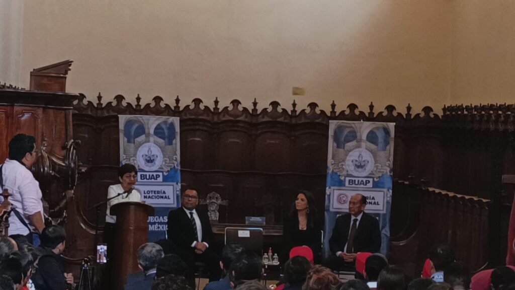 En el edificio Carolino, la rectora de la BUAP, Lilia Cedillo y Olivia Salomón, directora General de la Lotería Nacional en México, presentaron el billete conmemorativo al Colegio del Estado.