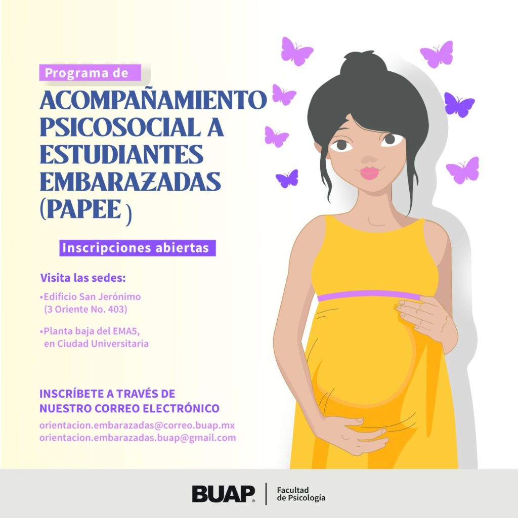 La BUAP habilitó inscripciones en el programa de acompañamiento psicosocial para estudiantes embarazadas, PAPEE (Programa de Acompañamiento Psicosocial a Estudiantes Embarazadas).