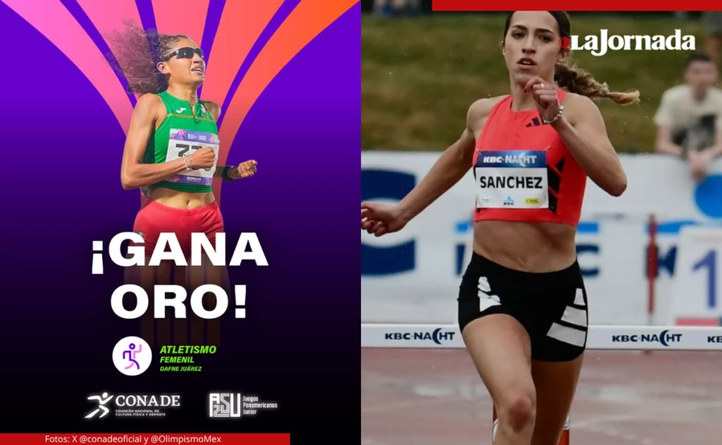 El atletismo entregó dos medallas de oro a la cosecha de la delegación mexicana en los Juegos Panamericanos Junior, que se disputan en Asunción. La mediofondista Dafne Juárez se coronó en la prueba de 1500 metros al registrar un tiempo de 4:23.58 minutos, mientras su compatriota Sabrina Salcedo se quedó con la plata al finalizar en 4:24.87.