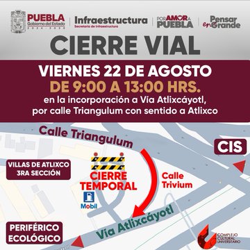 Por trabajos de la construcción de las escaleras eléctricas y elevadores para el puente peatonal en Vía Atlixcáyotl.