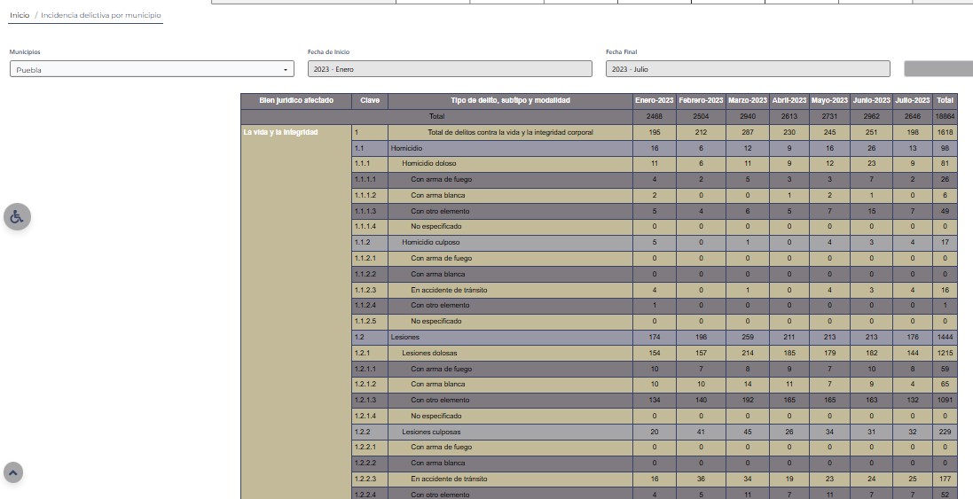 Durante la actual década, los delincuentes han sido los ÚNICOS IMPARABLES en la Angelópolis. Como ya se señaló, entre enero y julio del 2020 se denunciaron 9 mil 70 delitos, un año después la cifra se elevó a 16 mil 511, en 2022 llegó a 18 mil 641, en 2023 tuvo otro aumento al quedar en 18 mil 864.