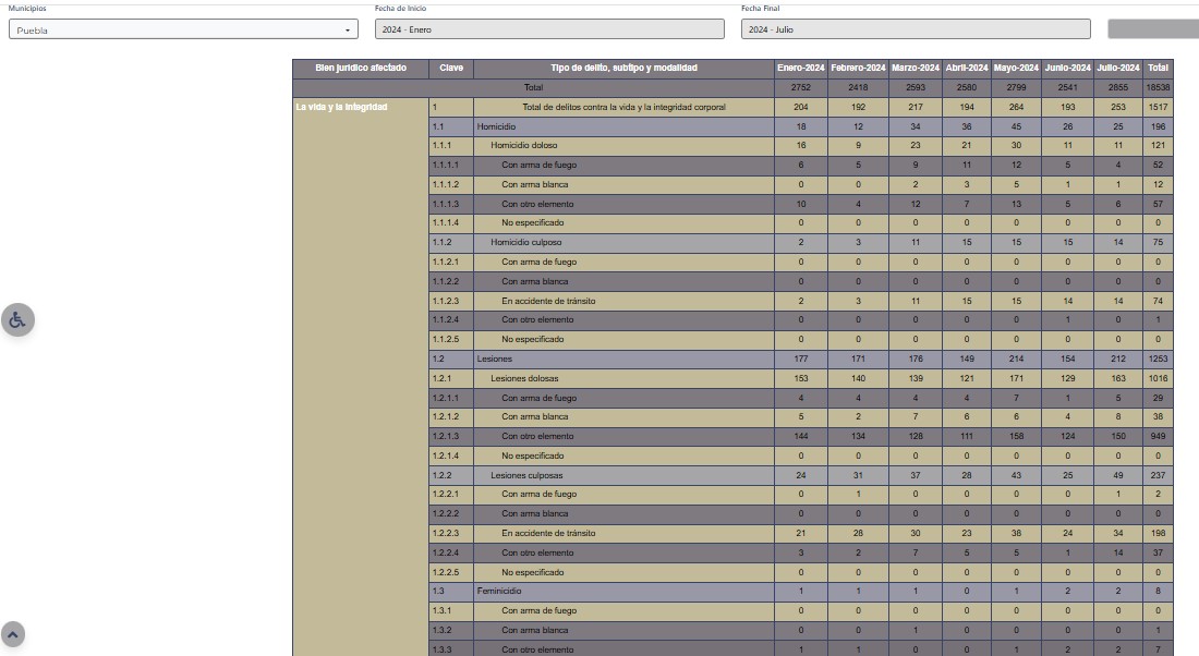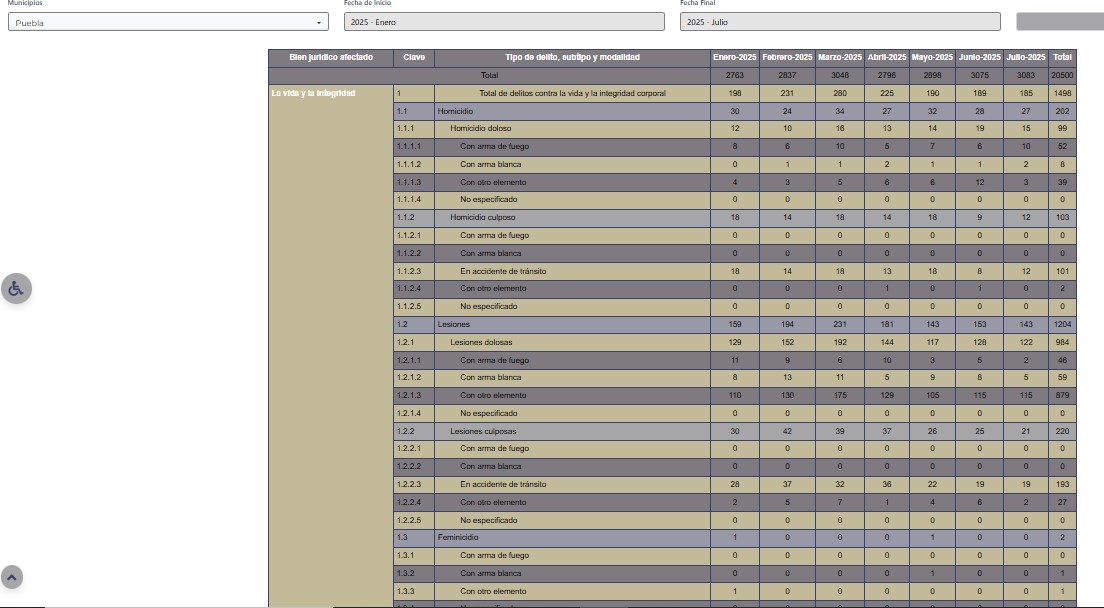 En esos mismos meses, pero del 2024, el total de crímenes registrados FORMALMENTE en Puebla capital disminuyó un poco, 18 mil 538, pero este año se disparó hasta los 20 mil 500: Hombre herido tras violento asalto a transporte público en Puebla capital