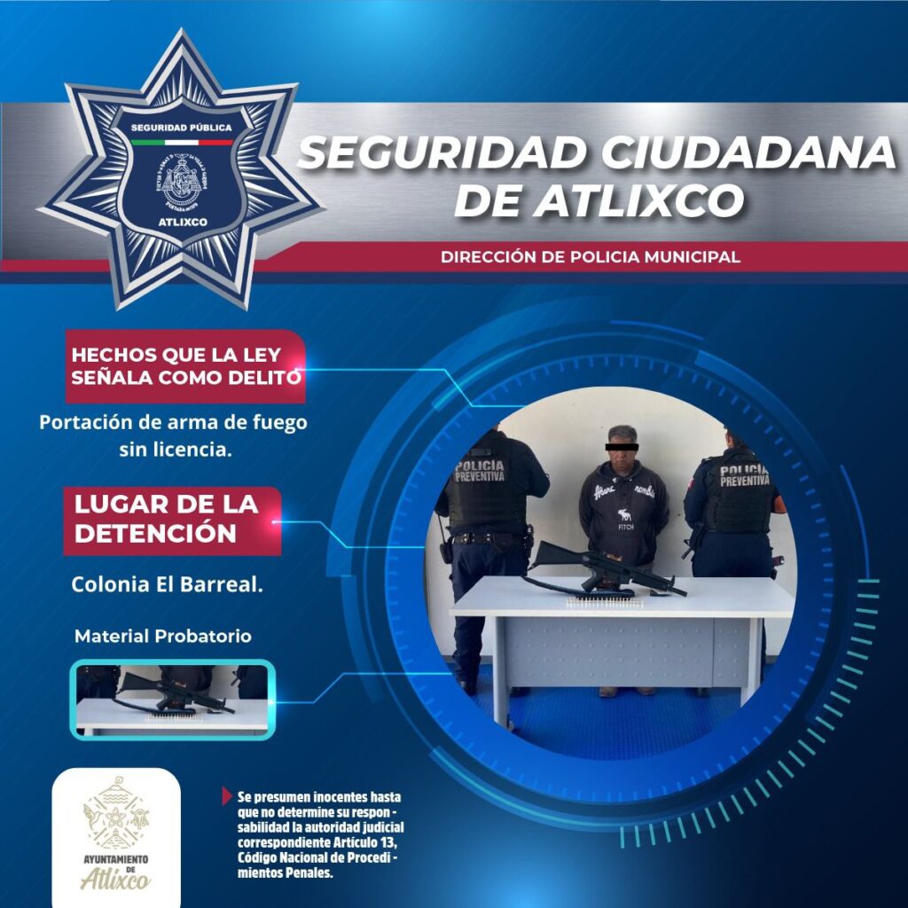 Gracias a un oportuno reporte ciudadano sobre una riña en la colonia Altavista, la Secretaría de Seguridad Ciudadana de Atlixco implementó un despliegue inmediato que permitió la detención de un hombre por la probable portación de arma de fuego sin licencia.