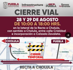 CIERRE VIAL EN LA INCORPORACIÓN DE CALZADA ZAVALETA A LA LATERAL DE RECTA A CHOLULA, CON SENTIDO A CHOLULA.