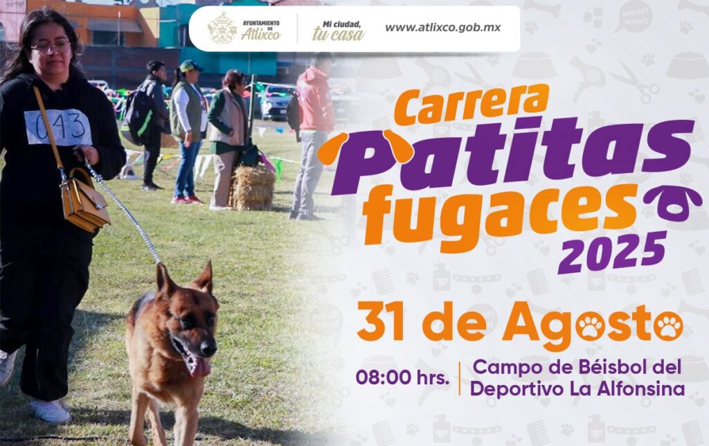 La presidenta de Atlixco, Ariadna Ayala, invita a las familias atlixquenses a disfrutar de una jornada diferente este domingo 31 de agosto a las 8:00 a.m. en el campo de béisbol de La Alfonsina, donde se llevará a cabo la esperada carrera “Patitas Fugaces”.