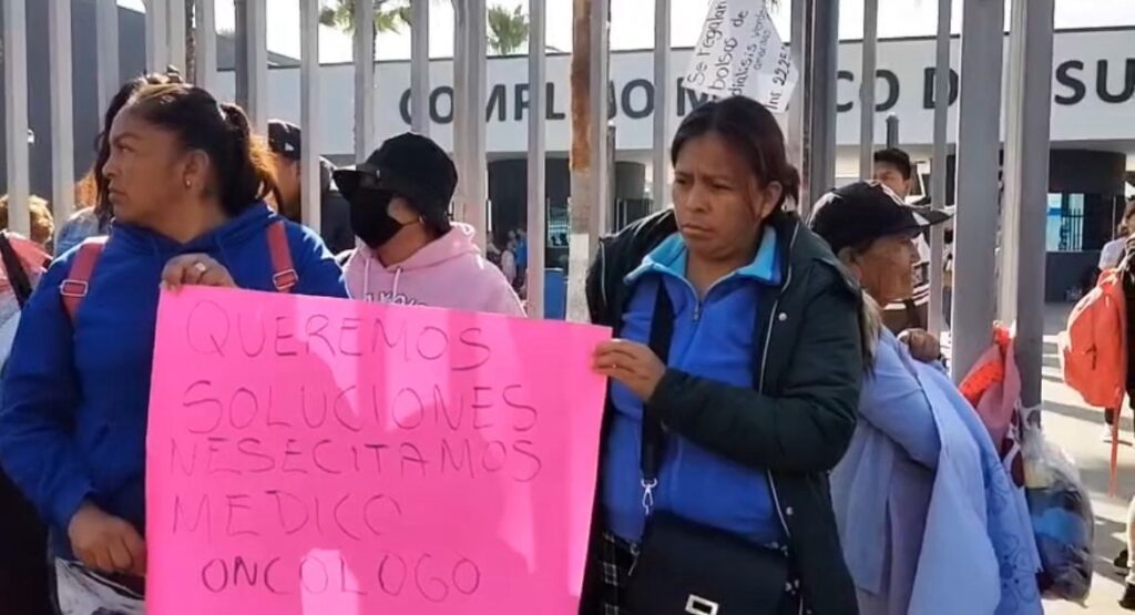 Familiares de pacientes del área de oncología realizaron una manifestación la mañana de este viernes afuera del Hospital General del Sur.