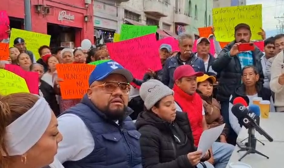 Durante una conferencia de prensa en la calle 16 Poniente y 5 Norte, donde con pancartas en mano con leyendas de “somos ambulantes, no somos delincuentes”, exigieron que no se les involucren en estos hechos.