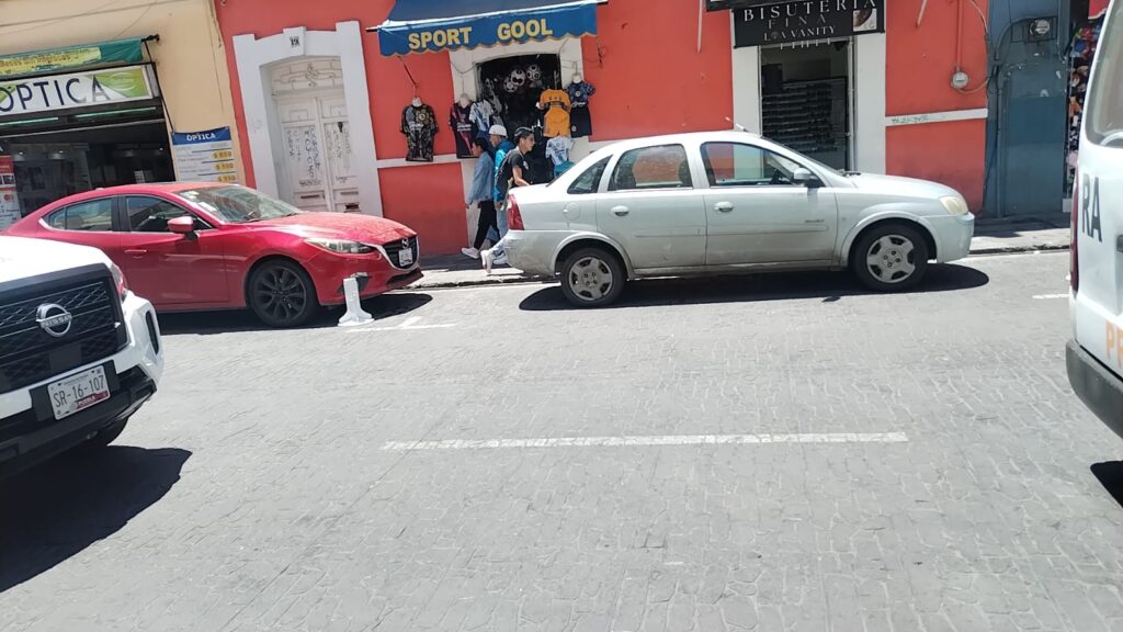 Al realizar un recorrido en la calle 10 Oriente, se observó que los comerciantes establecidos realizan el apartado de espacios de la vía pública, para estacionar sus vehículos.