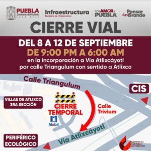 🚧 #InfraInforma | CIERRE VIAL EN LA INCORPORACIÓN A VÍA ATLIXCÁYOTL POR CALLE TRIANGULUM CON SENTIDO A ATLIXCO