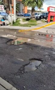 Un enorme bache ocasiona problemas para automovilistas en la calle antiguo Camino Real a San Jerónimo y bulevar Hermanos Serdán, a un costado del Mega Soriana.
