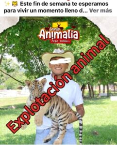 La denuncia de Coral Melo se centra en una exhibición de monos bebés que, según sus publicaciones, son utilizados en el lugar llamado “Animalia”, que es propiedad del presidente municipal. La activista señaló que estos animales, “con pañales y paseándose por oficinas”, son un ejemplo de cómo se instrumentaliza a las especies para obtener ganancias. “¡Esto es violencia! No pagues por la explotación animal”, escribió Coral Melo, haciendo un llamado a la acción. Además, en un mensaje dirigido directamente al alcalde, señaló que “el romantizar la explotación animal y peor aún obtener ganancia de ello” es un “mal social latente”.