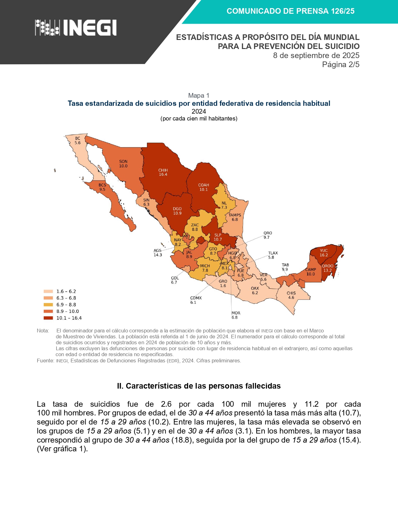 En contraste, las entidades con más problemas de este tipo están, predominantemente, en los extremos norte y sur del país, como Chihuahua (16.4), Coahuila (10.1), Durango (10.9), Sonora (10), Zacatecas (8.8), Yucatán (16.2), Quintana Roo (13.2) y Campeche (10): SEP investiga a maestra y directora de escuela en Zacatlán tras suicidio de alumno