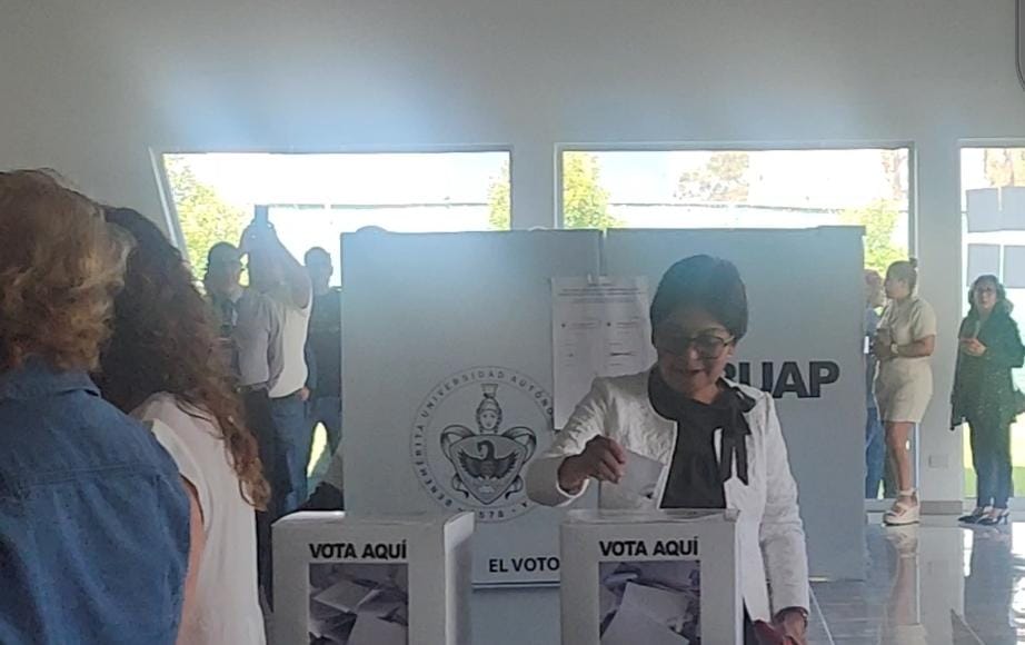 Lilia Cedillo acudió a emitir su voto en la elección del titular de la rectoría BUAP 2025-2029.