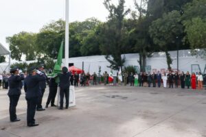 En este marco, se llevó a cabo la Ceremonia Conmemorativa del 15 de Septiembre, encabezada por la presidenta municipal, integrantes del Ayuntamiento y funcionarios, quienes rindieron honores a la Bandera Nacional en la Plaza de la Concordia, con la presencia de elementos de la Secretaría de Seguridad Ciudadana, trabajadores municipales y ciudadanía en general.