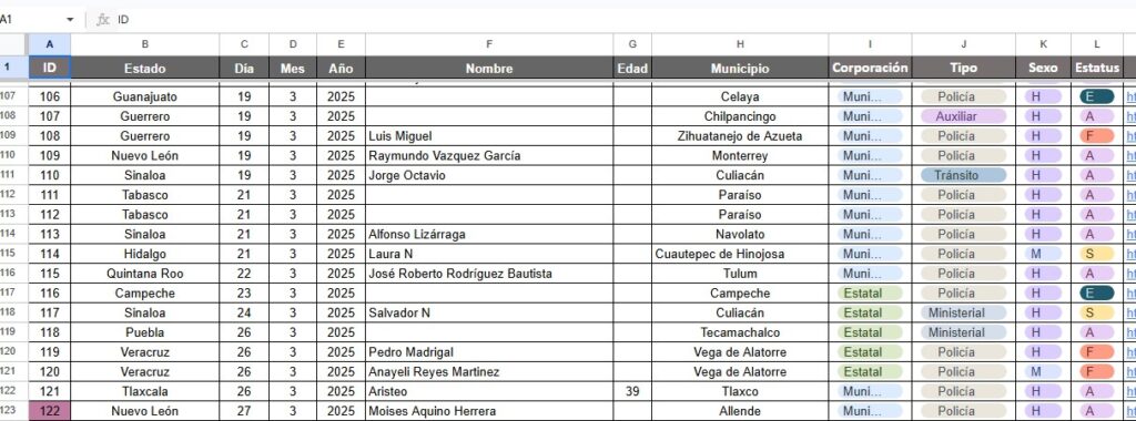 En el 2023 fueron seis, un año después el registro llegó a 12 y, entre enero y lo que va de septiembre del 2025, Puebla ya acumuló 11 policías asesinados, de acuerdo al conteo de Causa en Común, una organización no gubernamental con el ÚNICO registro nacional de este tipo, porque –al parecer – a nivel federal la secretaría Seguridad Ciudadana (SSC) no considera necesario llevar un conteo de los agentes caídos en el cumplimiento de su deber.