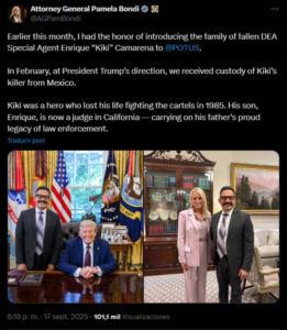 La Fiscal de Estados Unidos, Pam Bondi, declaró que Estados Unidos recibió a Caro Quintero por órdenes del presidente Donald Trump.