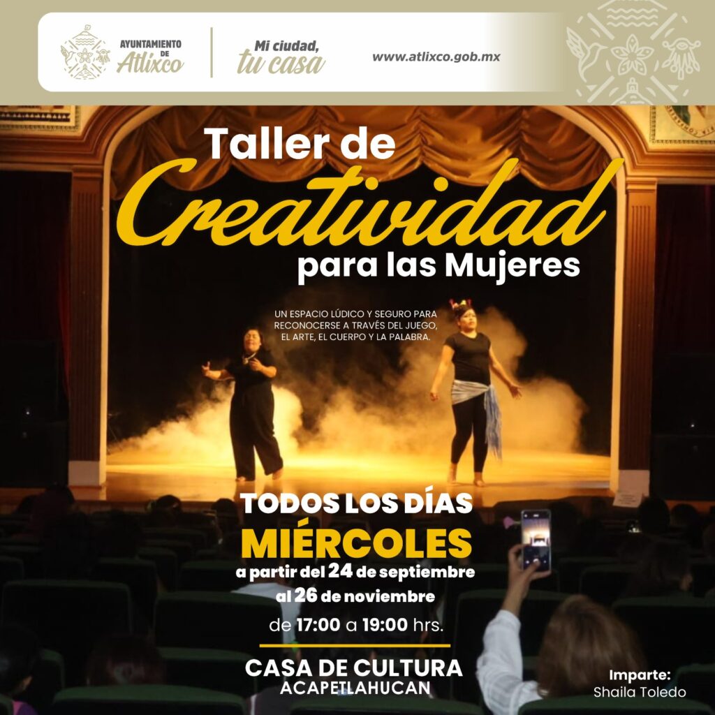 - 20 sept., 18:00 h, Casa de Cultura Acapetlahuacan: obra “Atlixco, yo te llevo en el corazón”.