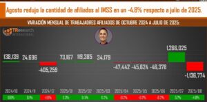 De acuerdo con datos del IMSS y TResearch.Mx, el crecimiento anual fue de apenas +0.3% en comparación con agosto de 2024, el nivel más bajo en décadas, lo que refleja una marcada desaceleración en la creación de empleo formal.