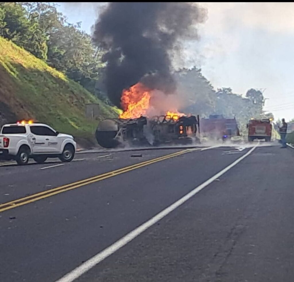 Se registró la volcadura e incendio de una pipa qué trasportaba aproximadamente treinta y dos mil litros de combustible, lo que provocó una movilización de los servicios de emergencia.