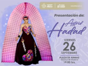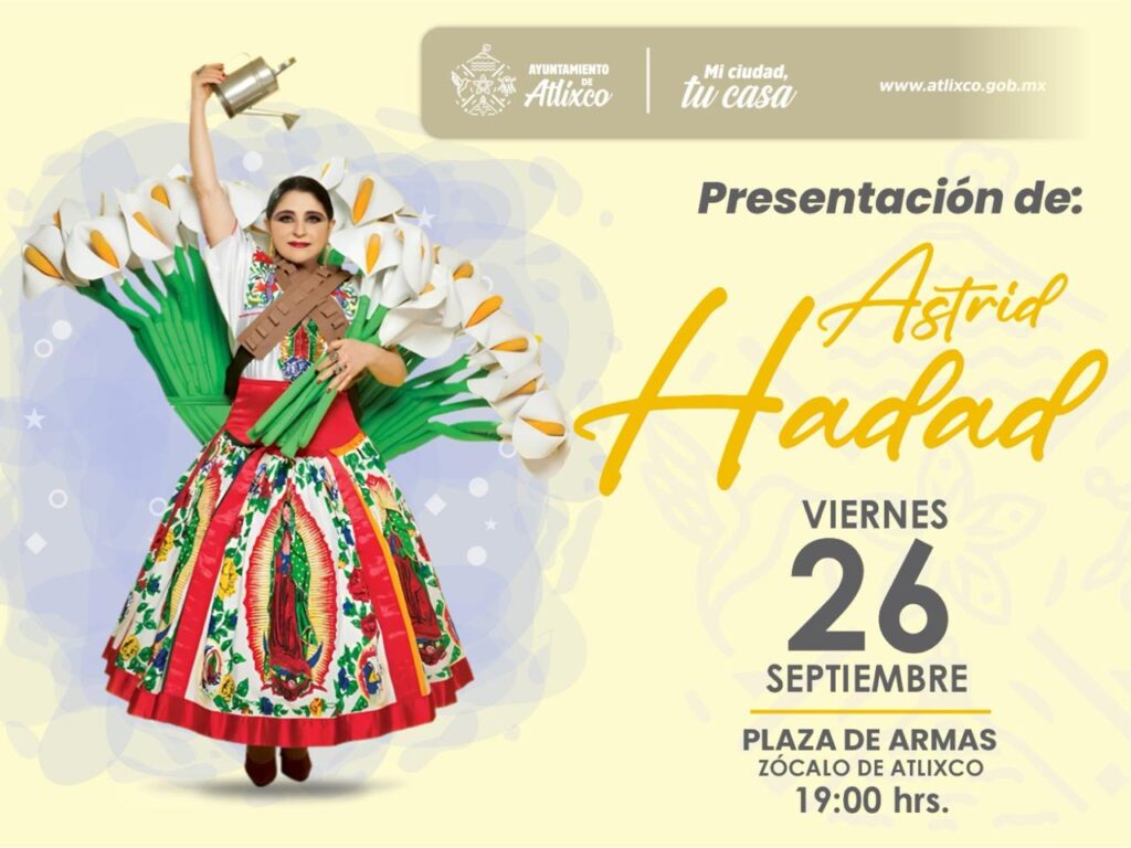 En el marco de las celebraciones previas al 60 aniversario del Huey Atlixcáyotl, la presidenta de Atlixco, Ariadna Ayala, anunció la presentación de la cantante y actriz mexicana Astrid Hadad, figura reconocida por su estilo irreverente y vanguardista conocido como heavy nopal o neo ranchero.
