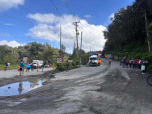 Vecinos de La Legua, Huehueymico y San Miguel Capulines realizan bloqueos, para exigir la reparación de diversos tramos carreteros en muy mal estado.