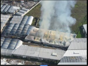 Indicó que además, deberán derribar las laterales de la bodega para poder sofocar en su totalidad en el fuego.