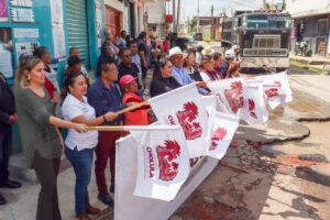 *30 de septiembre, 2025. San Pedro Cholula, Pue. – Con la firme convicción de abatir el rezago en todas las juntas auxiliares, así como de cumplir el compromiso de mejorar las vialidades y la movilidad de las familias cholultecas, la presidenta municipal de San Pedro Cholula, Tonantzin Fernández, dio el banderazo de arranque a la rehabilitación de una calle más.