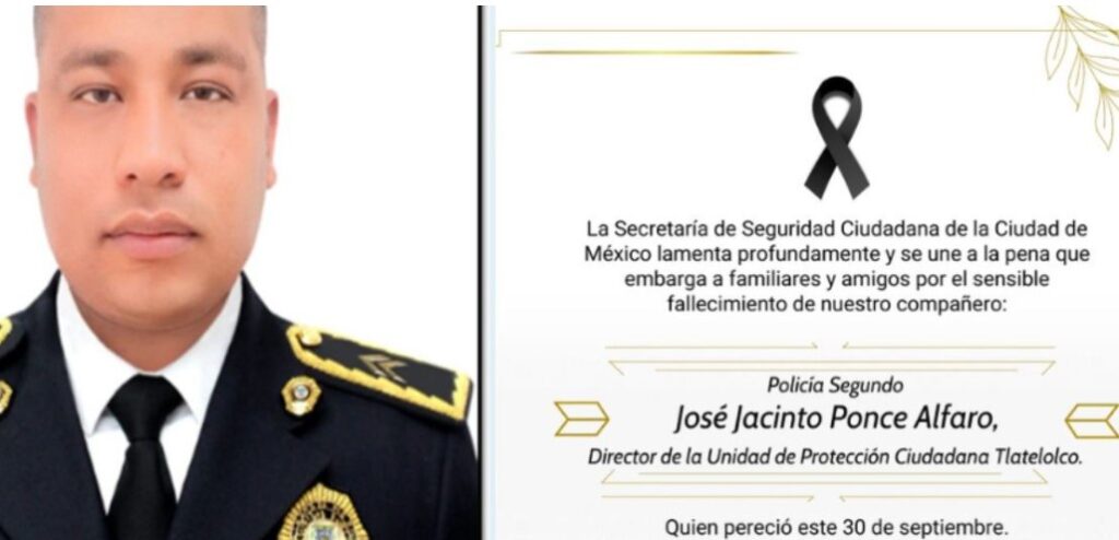 La Secretaría de Seguridad Ciudadana (SSC) de la Ciudad de México confirmó la muerte de José Jacinto Ponce Alfaro, jefe del Sector Tlatelolco, quien perdió la vida durante un intento de asalto en el municipio de Chalco, Estado de México.