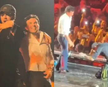 Lo que ocurrió a continuación fue uno de los gestos más celebrados de la noche. Mientras sonaba el coro de “Bailando”, Enrique Iglesias se arrodilló frente a Checo Pérez, en un gesto espontáneo que arrancó gritos, aplausos y carcajadas entre los presentes.