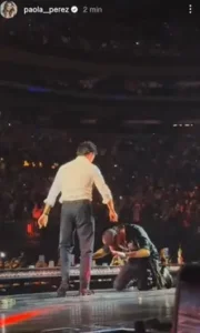 Poco después, decidió buscar a Checo Pérez, quien seguía el concierto desde su mesa. Con señas, el cantante español le pidió que se uniera a él sobre el escenario.