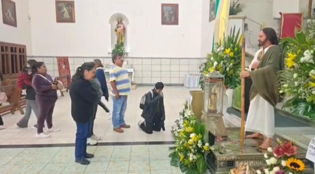 Decenas de fieles poblanos este jueves asisten al templo en la 7 pte 907, para observar la reliquia de San Judas Tadeo.