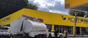 Una pipa de agua quedó atorada este sábado sobre la 11 Norte, luego de que el conductor intentara dar la vuelta y el vehículo se enganchara con unos tubos metálicos colocados sobre la acera.