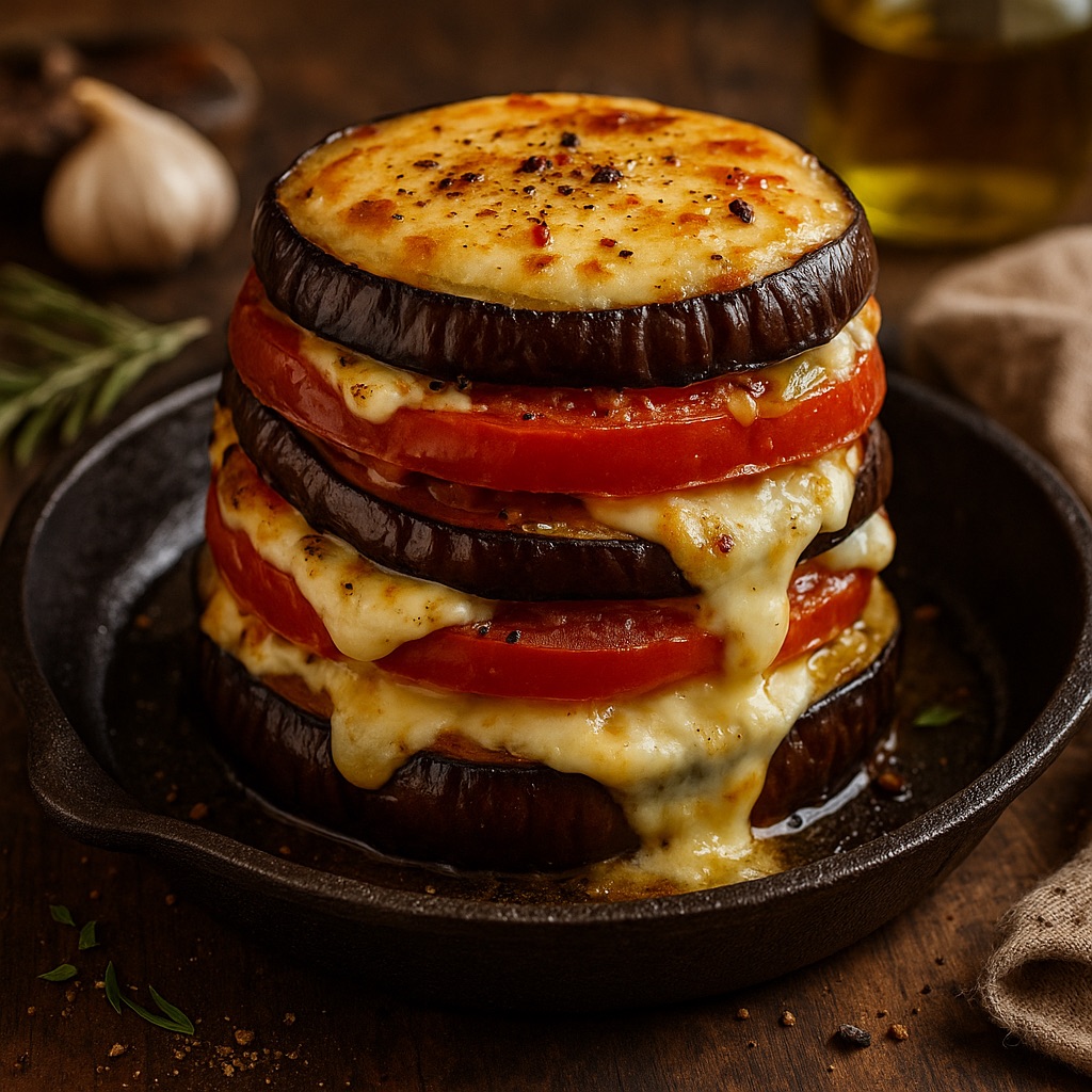 MIL HOJAS DE TOMATE, BERENJENA Y QUESOS