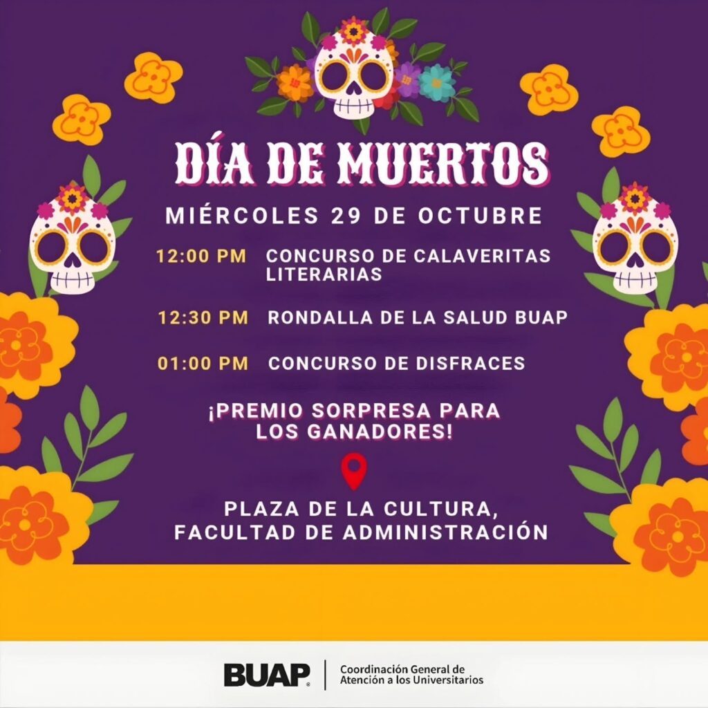 La BUAP convocó a las actividades del “Día de Muertos” el próximo 29 de octubre, en la plaza de la Cultura de la Facultad de Administración.